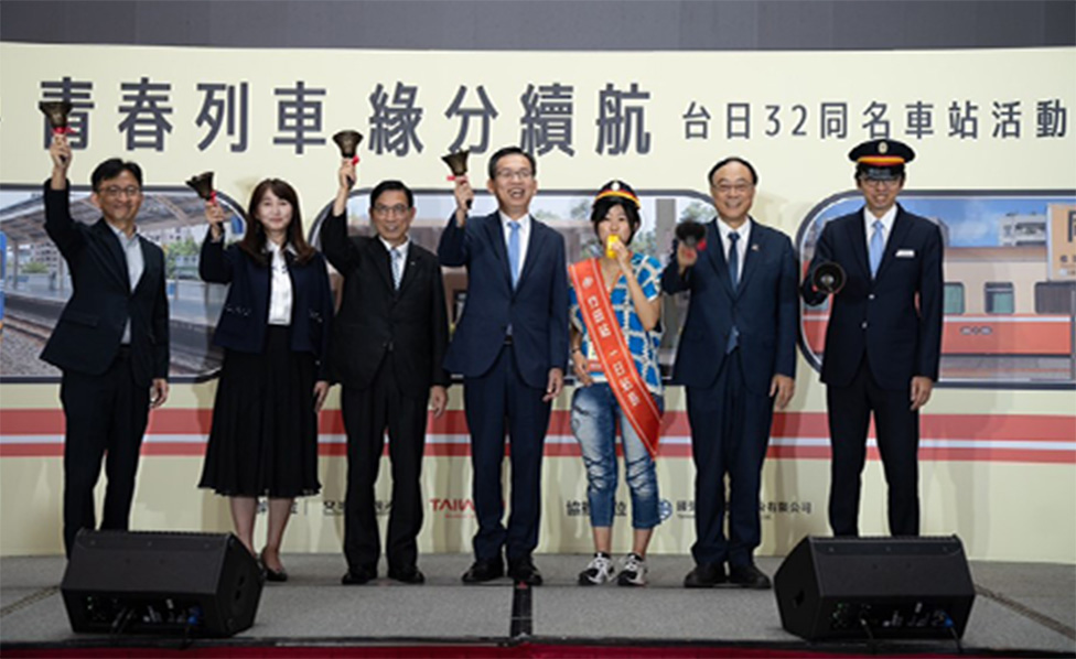 台日同名車站。台灣和日本有32個同名火車站,以促進鐵道旅遊為發想的「台日32同名車站—青春列車 緣份續航」,活動涵蓋台灣北、中、南、東各區,從台北車站舉辦出發式開始,展開3天2夜的鐵道之旅,探索台灣城鄉之美。