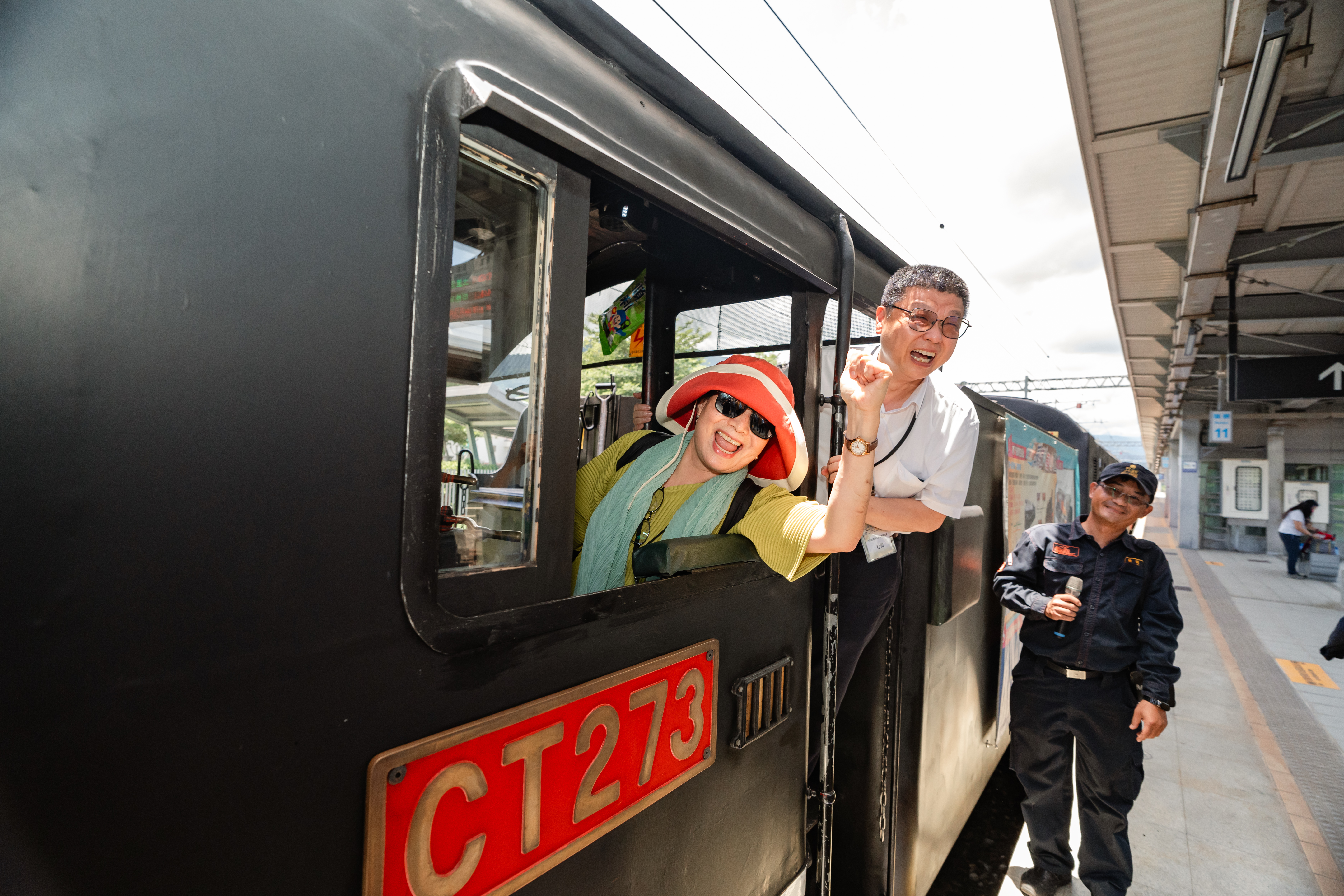 列車抵達玉里後,一位嬌客已駐足在月台歡迎大家,原來是台鐵為了翌日2024仲夏寶島號啟航活動正在暖身的蒸氣女王- CT-273蒸汽機車,這份驚喜讓所有旅客驚呼連連,也是鐵道旅遊的魅力之一。