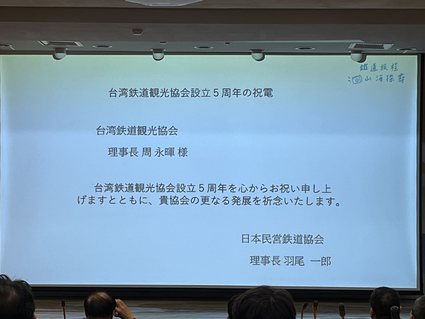 台灣鐵道觀光協會是台灣唯一會員擁有國內9家鐵道單位(俗稱台灣鐵道九兄弟,包括台鐵、高鐵、森林鐵路、糖業鐵路、台北捷運、新北捷運、桃園捷運、台中捷運、高雄捷運) 及鐵道旅遊產品銷售旅行社通路,並有運輸學術單位專業支持的團體。協會和日本鐵道界互有交流,並共同行銷鐵道觀光,擁有72家鐵道公司會員的日本民營鐵道協會原田一之會長及羽尾一郎理事長均在會員大會獻上對協會祝賀的影片及賀詞,交通部伍勝園次長亦蒞臨大會給予祝福。為感謝日本山陽電鐵董事社長上門一裕先生長期致力推動台日鐵道觀光交流,協會特別致贈感謝狀。