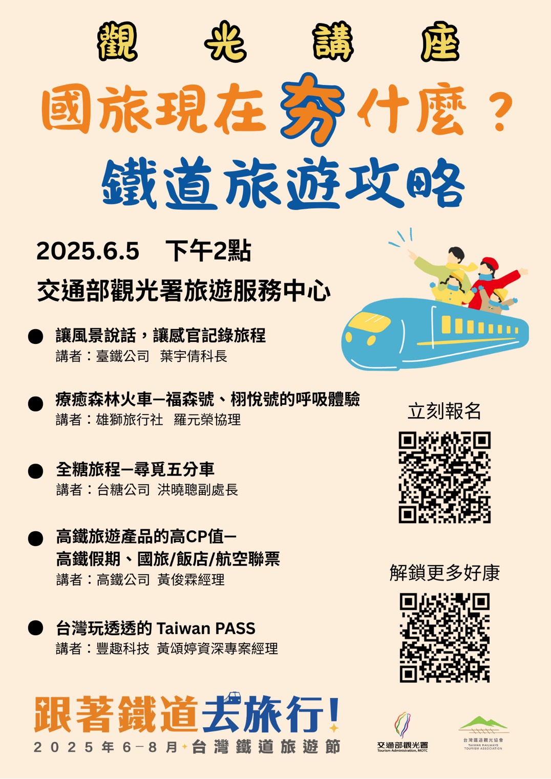 趁著鐵道旅遊節的眾多活動和好康,跟著鐵道去旅行,今年一定要在台灣過個不一樣的夏天!詳情請參訪台灣鐵道觀光協會官網(連結)